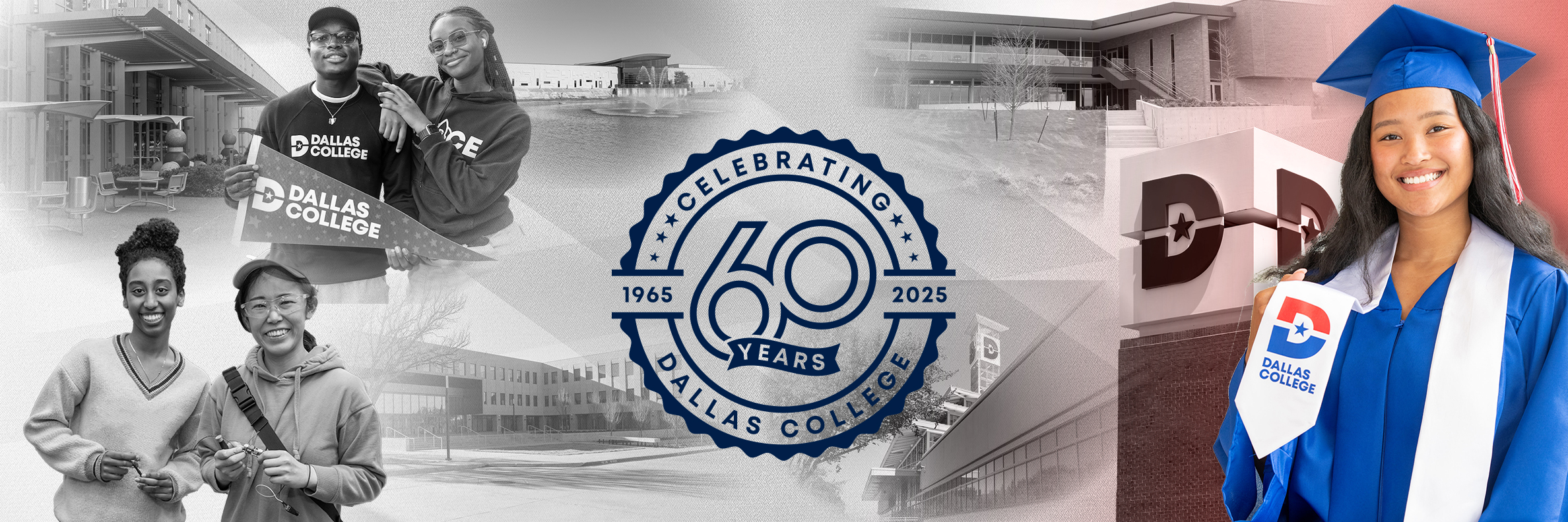 This online toolkit provides a collection of approved graphics and assets for use in our digital and print communications for Dallas College's 60th anniversary. Download our logos, banners, email signature graphics and more to ensure your materials stay consistent with our brand standards.