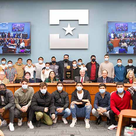 The Dallas College Board of Trustees and other college leaders celebrated the Brookhaven Lady Bears soccer team's national championship.