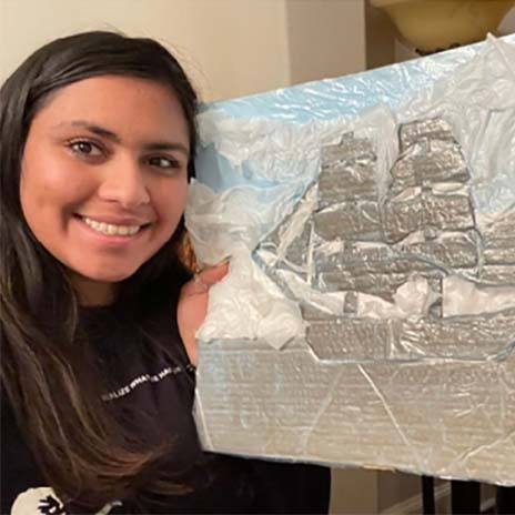Faculty took a lead role in involving students. Dallas College North Lake Campus art professor Brett Dyer challenged his students, working at home, to create two-dimensional recycled texture art collages that portray well-known works of art. Each project was made entirely of recycled, reused and repurposed materials.