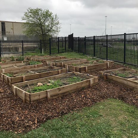 Urban gardens that Dallas College student Lisa Roark developed behind the Bridge Homeless Recovery Center