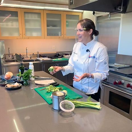 Dallas College student and chef Lisa Roark gives a Dallas College Cooks! demonstration at Dallas Arboretum.