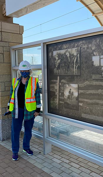 Once her artwork was in place, Ray donned a hard hat and reflective vest and was escorted to the site to inspect the installation. She was pleased with the result.
