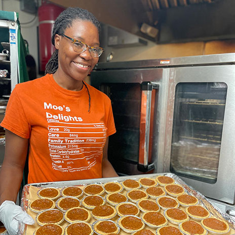 Monisha Clifton, owner of Moe's Delights, shows off her pies.