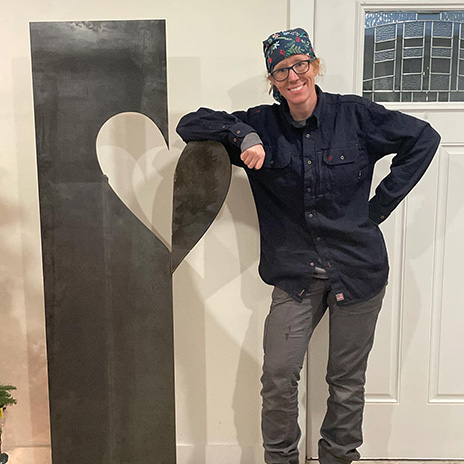 Danielle Trent stands alongside one of her giant, welded sculptures. She found calm and purpose in the repetition and artistry of welding.
